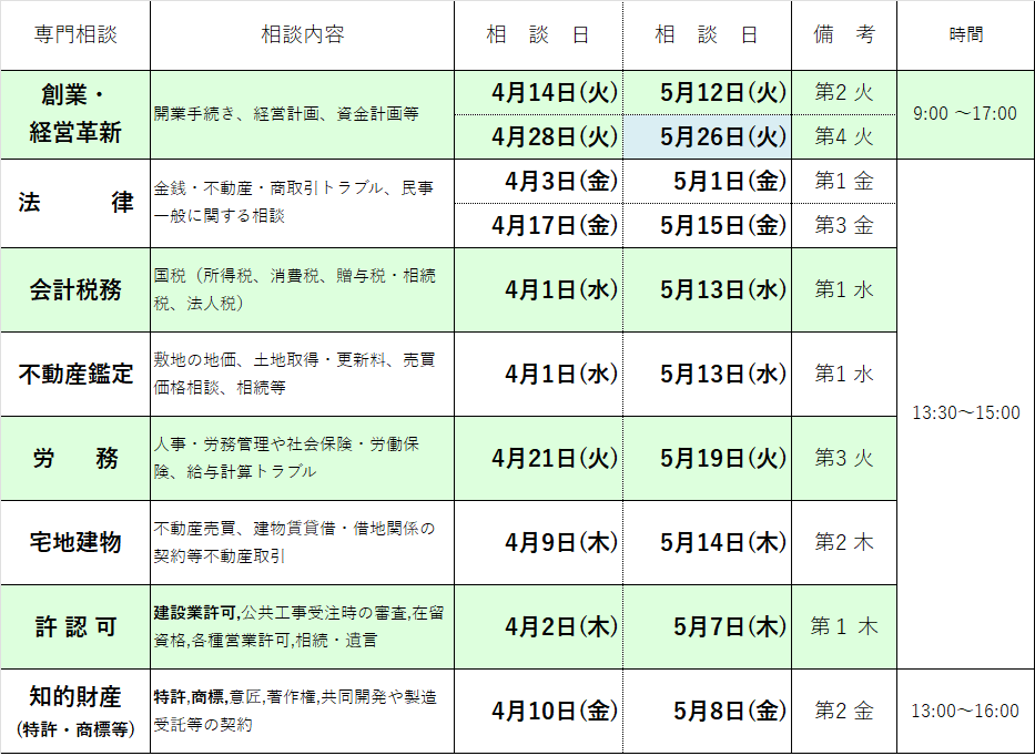 第2・4火曜日 9:00~17:00
