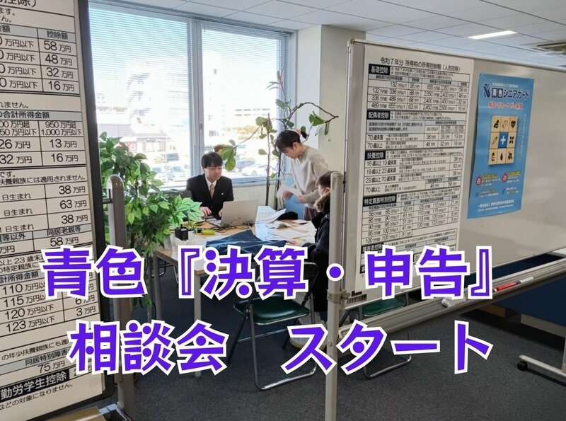 個人の青色事業者を対象とした『決算・申告』相談会を本日(2/3)よりスタートしました
