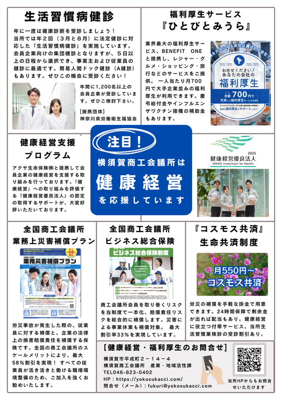 「従業員を大切にする会社は、選ばれる会社です」当所ではこのキャッチフレーズをもとに会員企業の福利厚生を考えてご案内しております
